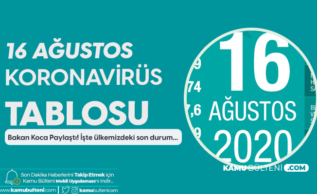 16 agustos koronavirus tablosu yayimlandi