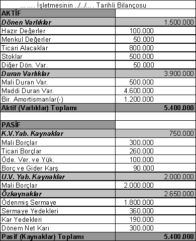basit bilanco ornegi ve anlatimi muhasebep