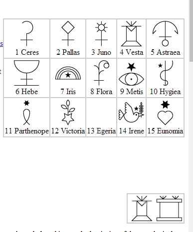 s dewrim asteroid sembolleri