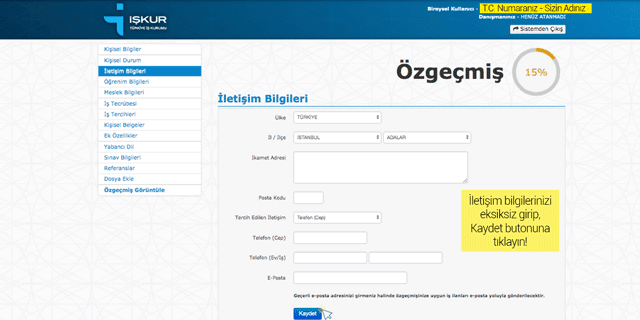 iskur profil olusturma nasil yapilir kayit yenileme